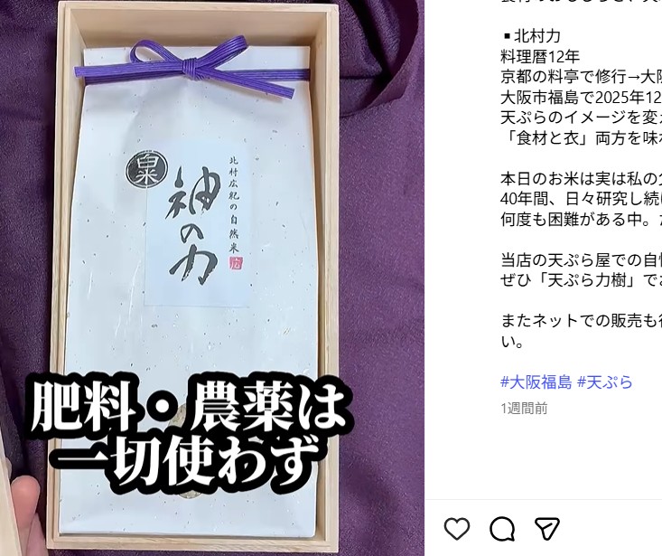 息子のインスタグラムには、わたしの自然米「神の力」の動画も掲載されました。